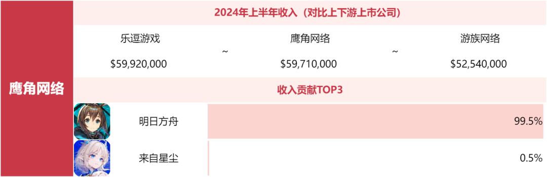 旗下的主要产品是《明日方舟》,目前也在围绕这一IP正在研发新品《明日方舟:终末地》。今年上半年《明日方舟》贡献了99.5%的收入。过去一年里《明日方舟》在国内iOS畅销榜TOP120徘徊,不时还能够排在TOP10。另外买断制游戏《来自星尘》在今年上线,而且国内只是这款游戏的第二大收入来源,其在日本市场要更受欢迎。