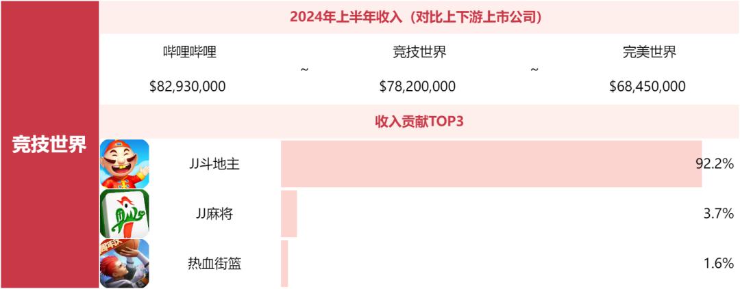竞技世界的优势领域在于棋牌游戏。《JJ斗地主》稳定保持在国内iOS畅销榜TOP30,上半年贡献了超过90%的收入。