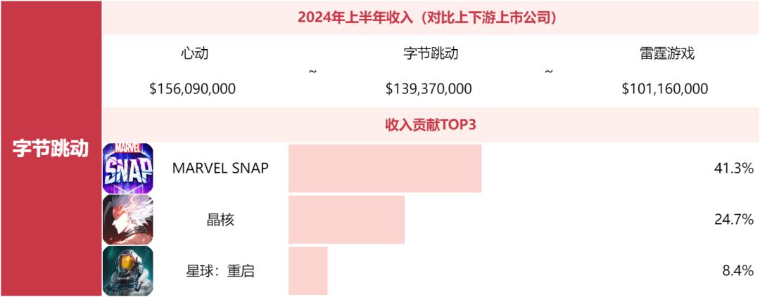 旗下流水收入占比最高的是海外代理发行的《MARVEL SNAP》,由Second Dinner研发,上半年贡献了超过40%的收入。《MARVEL SNAP》今年基本仍保持在美国iOS畅销榜TOP100,不过对比去年的表现仍稍有下滑。