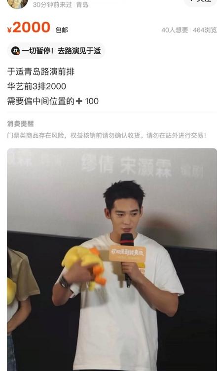 “中午的场,已经有人进去了。”一位二手平台的卖家给记者发来了图片。从图片上的购买界面可以看出,该票卖出了880元。“于适肯定会到,拍下来我发你二维码,你取票。”不过,从中午场到记者询问的下午场,电影票的价格已经涨到了950元。