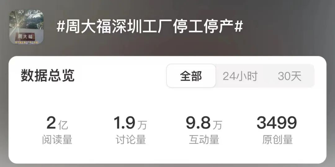 一时间,“周大福停工停产”“周大福倒闭”的传言飘散在互联网的每个角落。