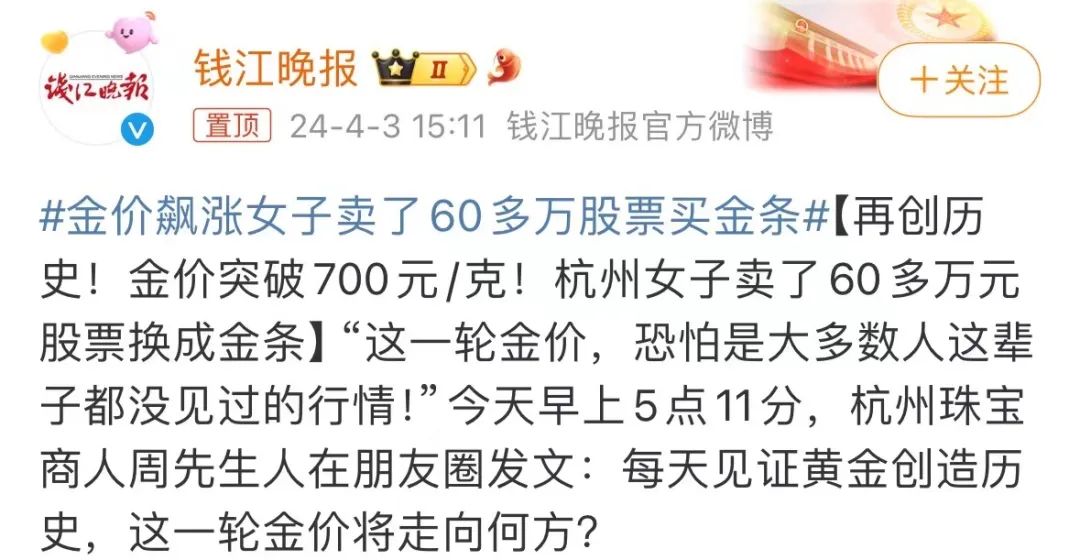 杭州一位85后女士,过去半年卖了60多万股票买金条。
