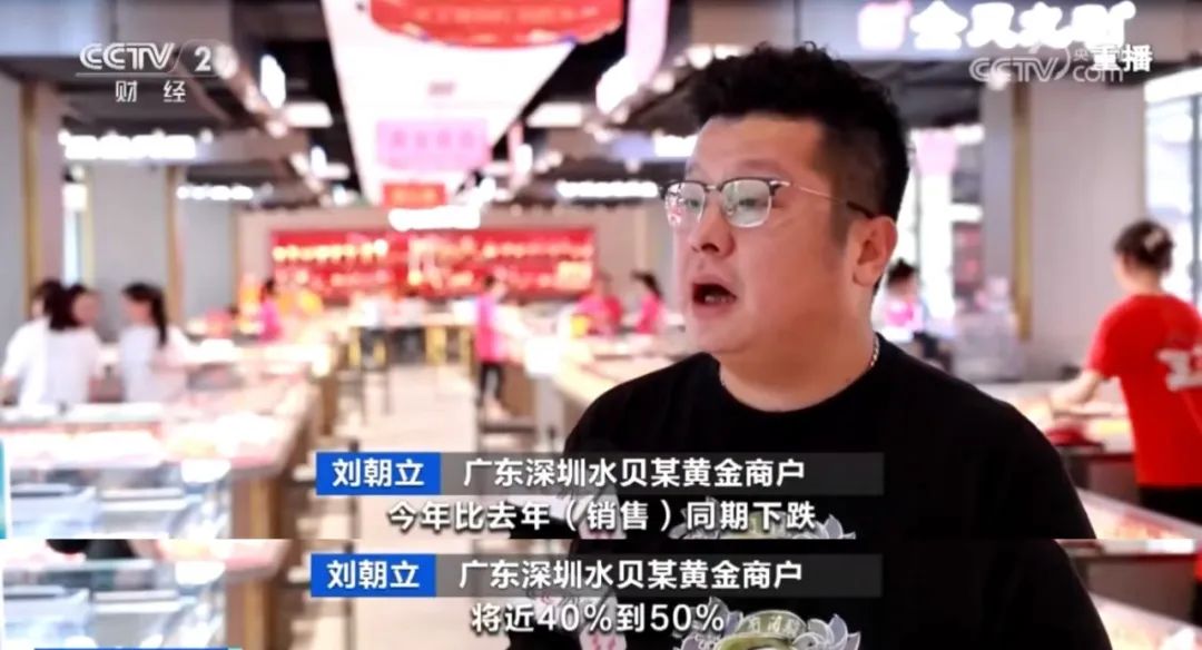 据央视新闻报道,今年五一假期,水贝某黄金商户的销售额比去年同期下跌了将近40%-50%。