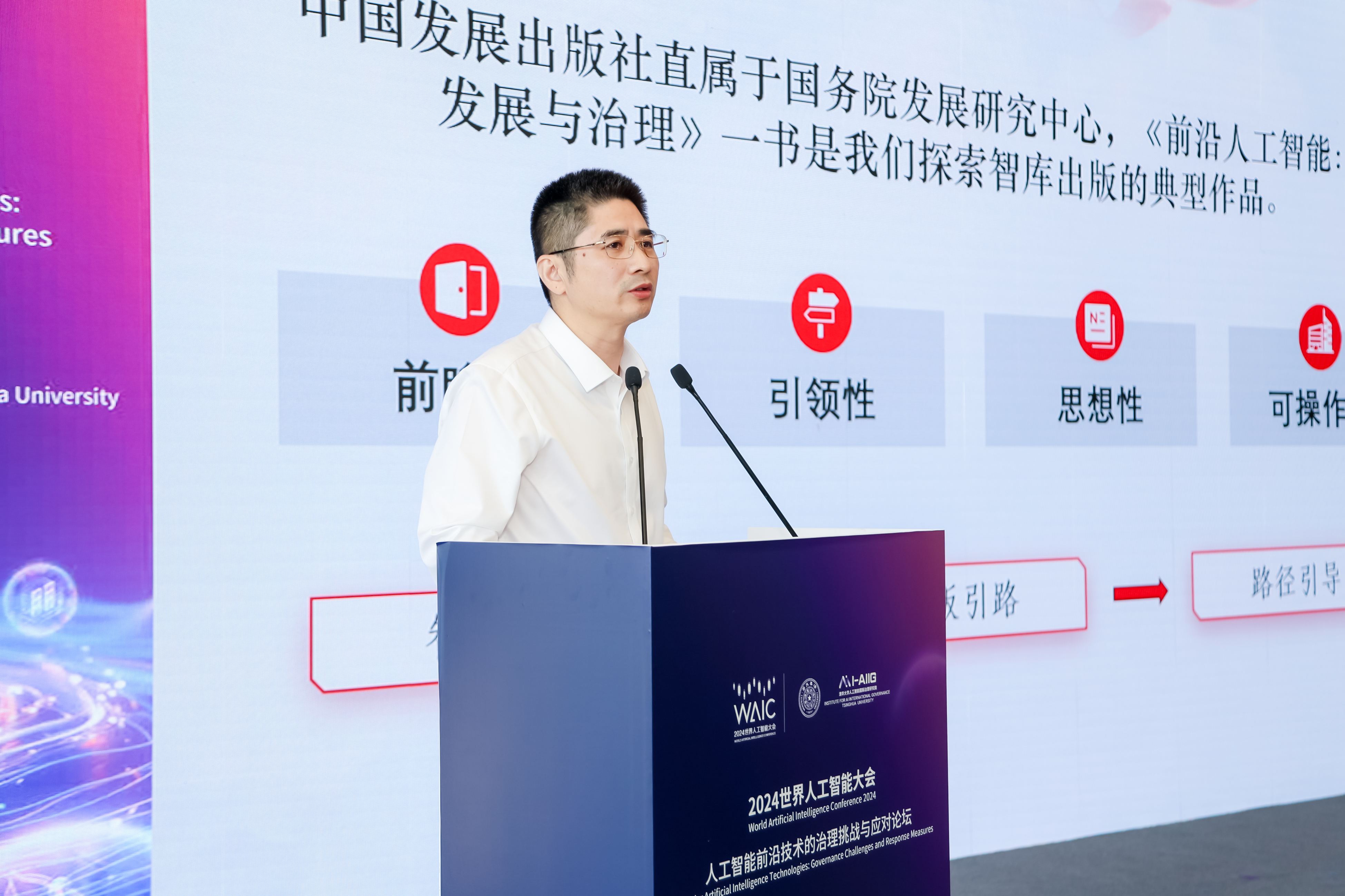 由薛澜担任顾问、梁正主编的《前沿人工智能:发展与治理》新书也在论坛现场正式发布。中国发展出版社社长王忠宏指出,在清华大学人工智能国际治理研究院的支持下,该书覆盖了人工智能的发展全景、产业应用,深入探讨了人工智能的潜在风险和国际治理等多个关键议题,介绍了前沿人工智能产业生态发展轨迹及商业变革趋势,展示了人工智能在工业、政务、教育等多个领域的实际应用案例和成效,同时也探讨了人工智能国际治理议题,提出了构建开放包容的国际治理体系的策略与方法。