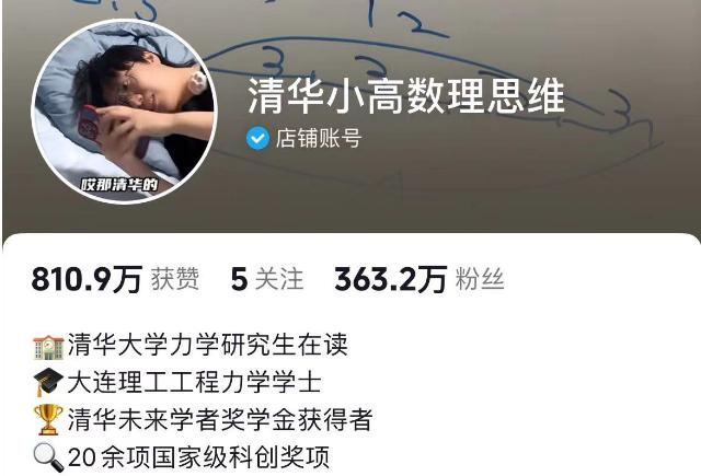 教育行业,能否成为名师,也考验其个人的教学经验和学术背景。这方面@清华小高数理思维 有着独特的优势,大连理工本科,清华大学研究生,清华未来学者奖学金等等名头,让粉丝对博主有了一个很深的第一印象。