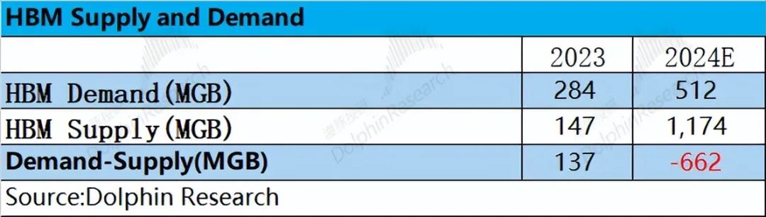 由于当前三大存储厂商仅对2023年及2024年的产能情况进行披露,海豚君也主要先比较2023-2024年HBM的供需关系情况。