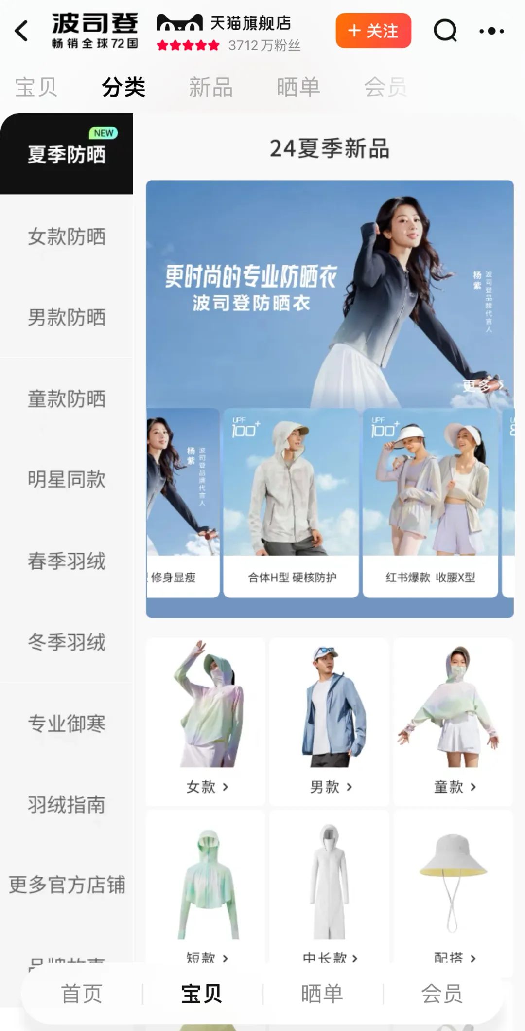 而波司登则用了另一种解法。一方面在直播间持续推反季羽绒服,另一方面则通过扩当季品类吸引更多消费者,直播间的标语围绕“反季”“防晒”展开,产品中也融入了防晒服、防晒口罩、冰袖等产品。