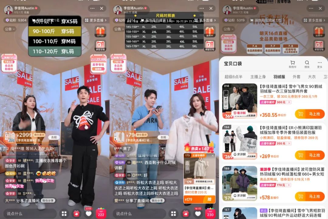 室外40℃的酷暑天,李佳琦的直播间却“飘起了雪”,主播们穿上厚重的鹅绒羽绒服,制造反差感。实际上,这是李佳琦提前预告的“反季直播专场”,低至5折以下的羽绒服、毛呢大衣、羊绒衫等保暖神器,是吸引消费者快速做购买决策的因素,因为便宜,多个冬季品类在李佳琦的直播间里卖到脱销。