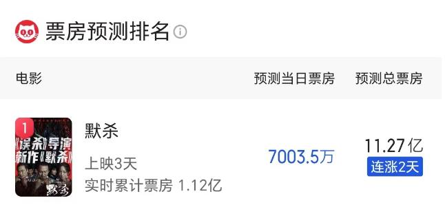 虽然电影市场已经5个月没有出现票房破10亿的影片,但2024年暑期档终于在微博迎来了第一个“爆”的热搜——遗憾的是热搜话题为“《野孩子》撤档”,与去年《消失的她》引爆暑期档不可同日而语。好在柯汶利执导,王传君、张钧甯、吴镇宇等人主演的《默杀》在近日强势扛起大盘。《默杀》在工作日三天破亿,场均人次、上座率、票房占比等成绩均为第一,达成“大满贯”的同时,影片预测总票房也在节节攀升。据猫眼专业版显示,该片预测总票房从上映首日的4.79亿,大幅上升至今日的11.27亿。