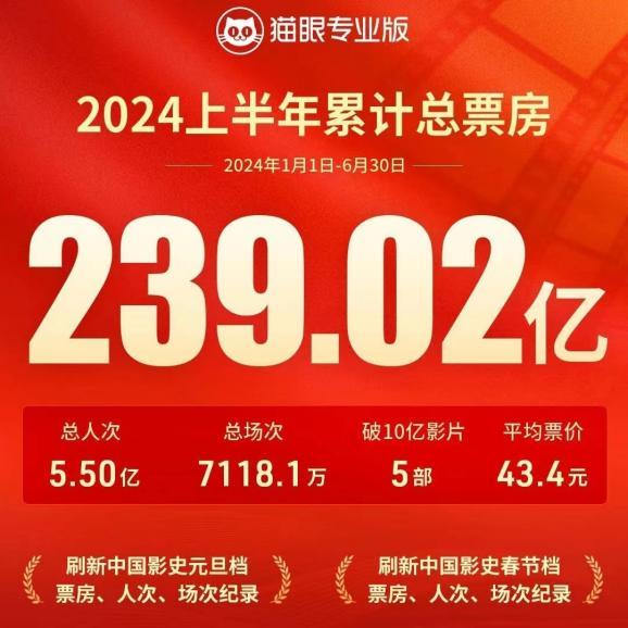 2024电影半年报:元旦、春节等三档期“史上最佳”,总票房却“近八年最差”?