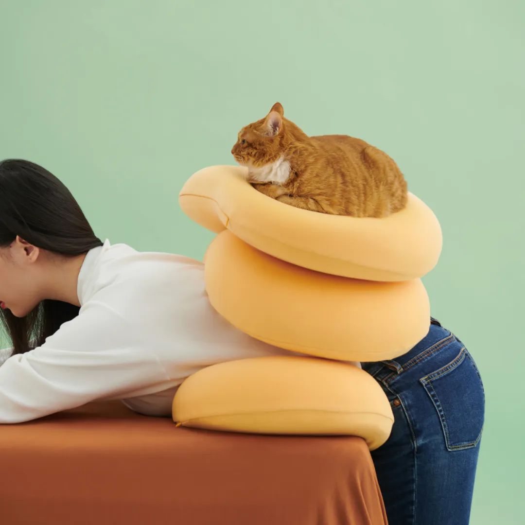 杨远骋:猫肚皮枕套的材料,是我们在lululemon瑜伽服上看到的,非常亲肤,可以做出一个圆润造型,之前枕头多数都是白色立方体,我们开创了一个全曲面造型。