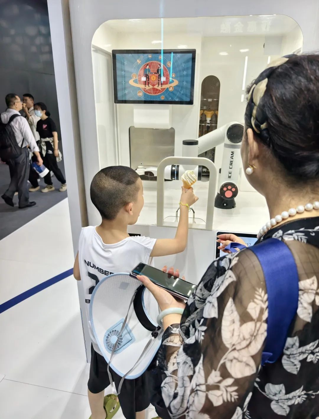 比如现场来逛展的小朋友,就觉得很有意思,毕竟自己平时都是在网上看这些 AI 应用,这次大会终于能体验到了。
