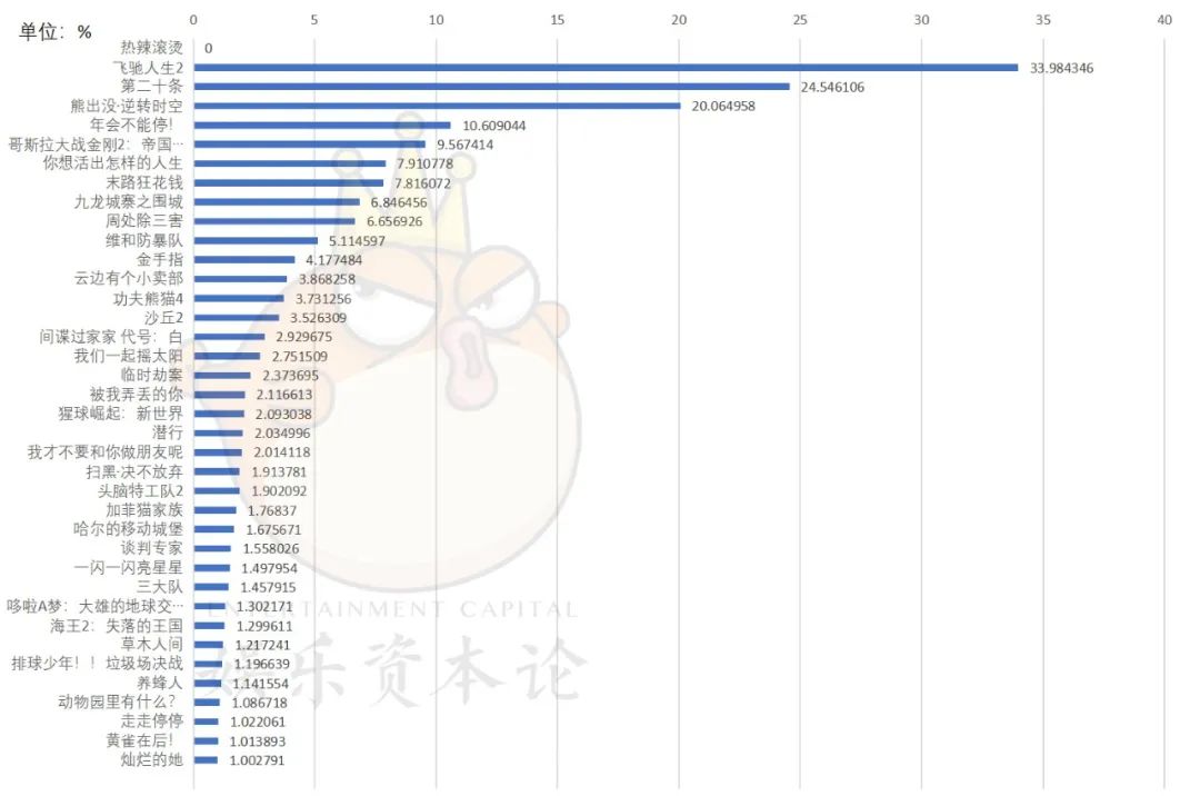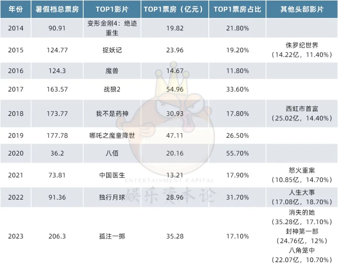 与春节档相比,暑期档持续时间更长,且并非全民假期,固定观影需求成分占比较小,这才导致头部影片对于暑假档起到至关重要的影响。头部强则暑期档强,头部多则暑期档票房更加可观。