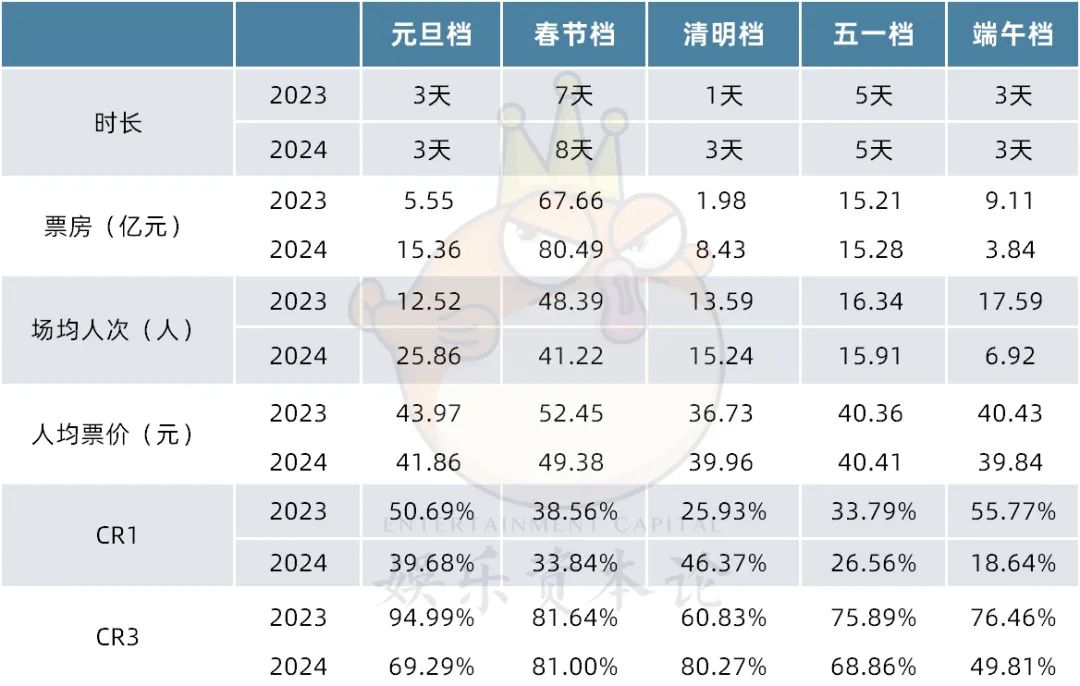 2023与2024上半年档期情况比较 数据来源:灯塔专业版