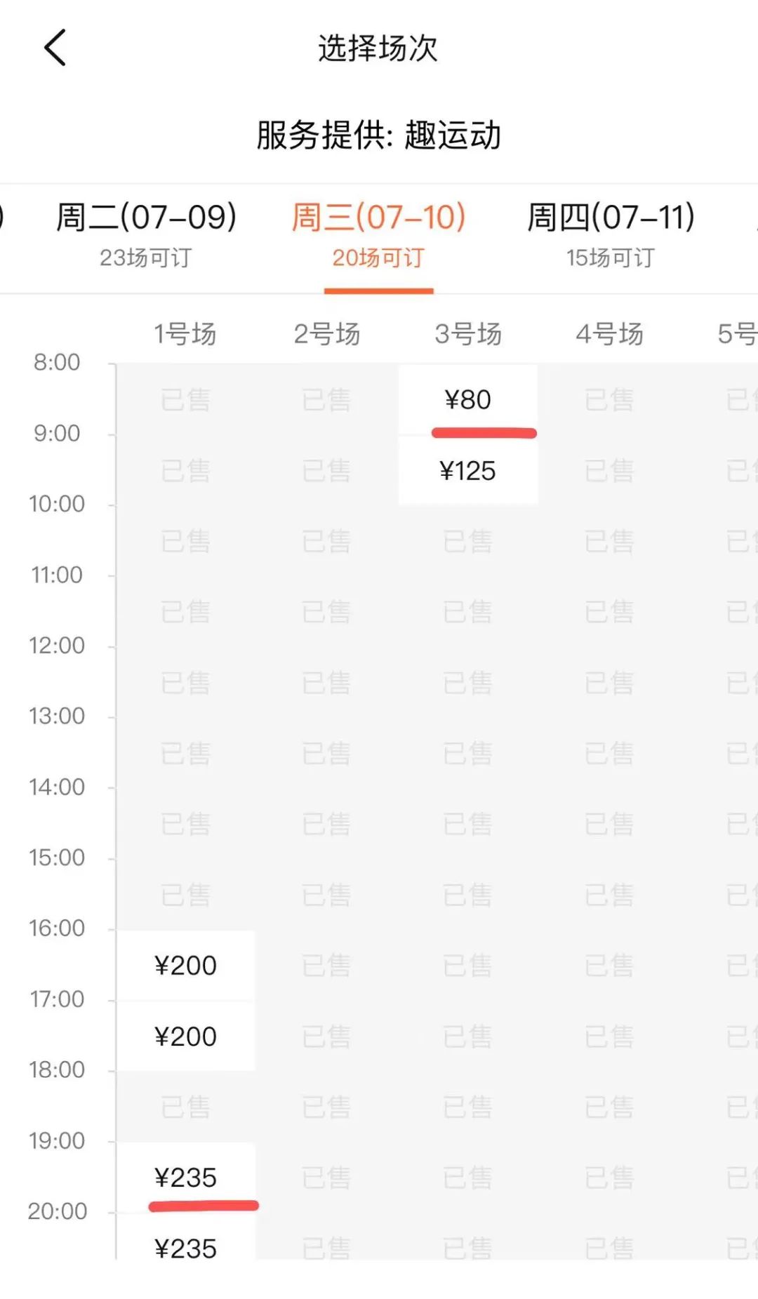 中新经纬在某团购网站上查询发现,目前北京的羽毛球馆场地价格普遍在80-250元左右,工作日上午价格偏低,晚间价格较贵。如北京亿友韵动羽毛球馆10日上午8:00-9:00的场地价格为80元每小时,但在19:00-22:00预订高峰期,每小时的价格高达235元,是早晨价格的近3倍。