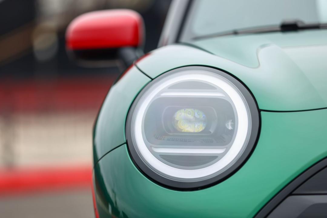 圆形头灯可以说是 MINI 最标志性的设计,椭圆形的LED大灯组保留了环形LED日行灯设计,灯腔内侧还有平行相间的灯带设计。