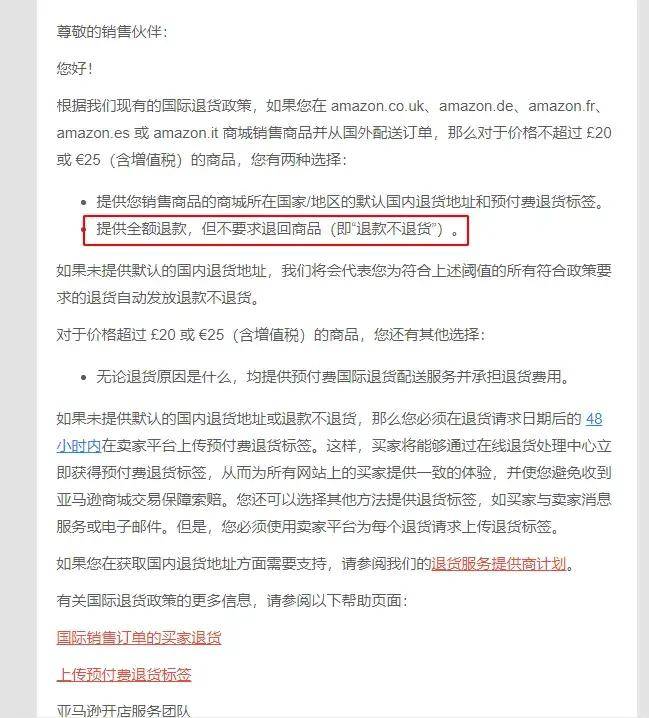 亚马逊官方给出的解释:仅退款是卖家需求度很高的意向功能,在很多情况下,它能够让卖家节省退货运费和处理成本,降低买家拖货不满率(RDR),提高您的店铺评级。
