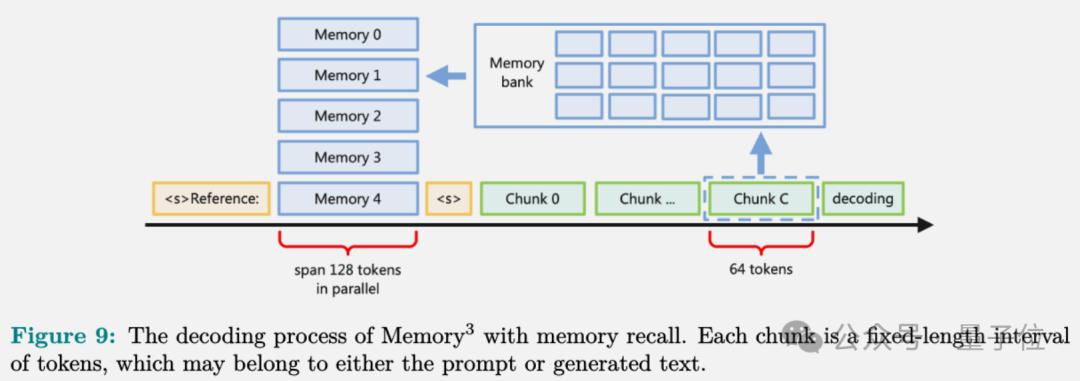 以注意力层的key-value向量作为显式记忆的载体,在推理之前,Memory3模型将所有引用文本转换为显式记忆,并将它们保存在硬盘或非易失性内存设备上。
