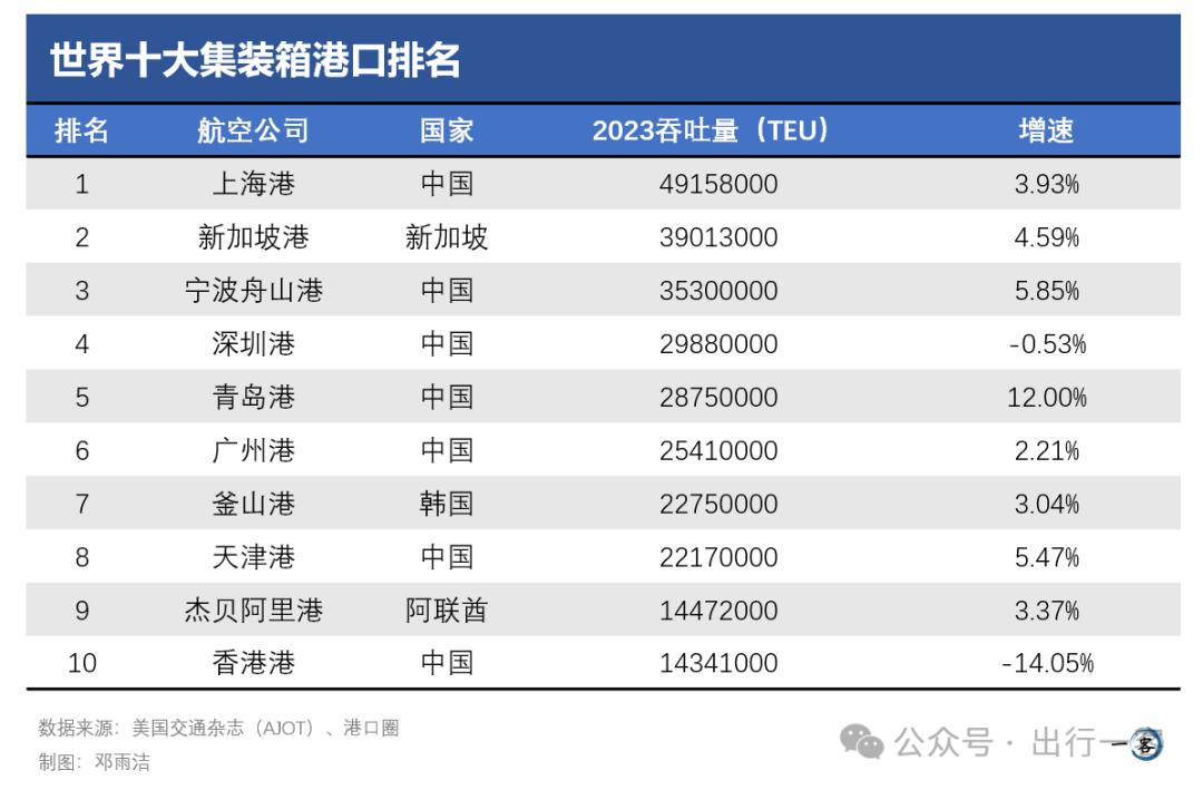 集装箱港口排名,一定程度反映了该国水运规模化程度。
