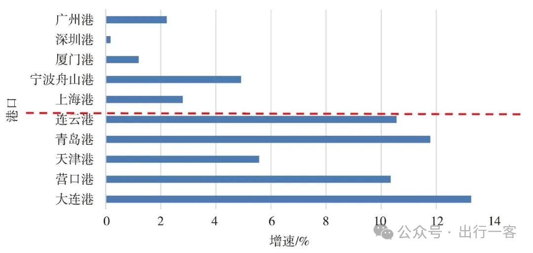 从区域方面看,南北差异明显,北方港口增速明显快于南方,大连、营口、青岛、连云港港均实现两位数增长,南方上海、宁波舟山、厦门、深圳、广州港增速均在5%以内。