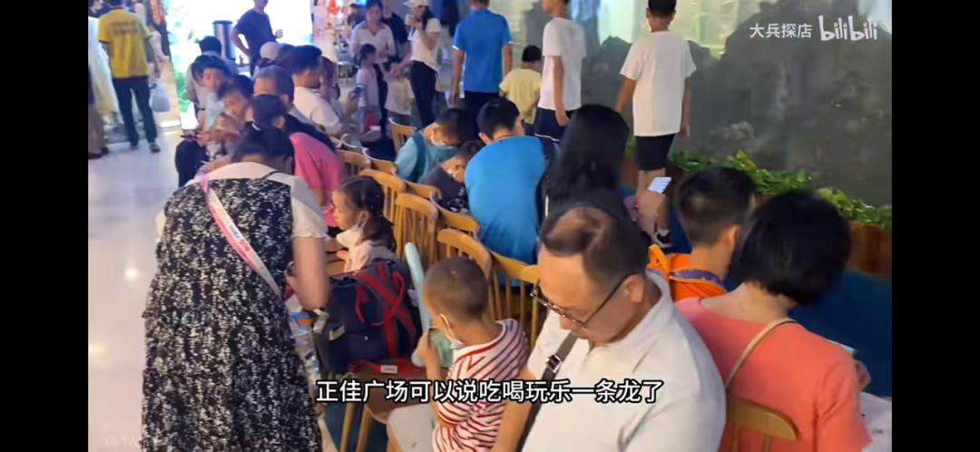 除了博主这个三四百个月的超龄儿童,绝大多数都是带娃家庭组,每桌标配起码一个小孩,门口等位区更是人山人海,让人恍惚误入了幼儿园开学现场。