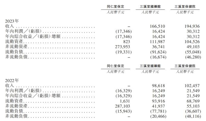 并入报表之后,三溪堂保健院在2022年、2023年分别取得收入1.02亿元、1.95亿元,净利润分别为2154.9万元、3031.2万元。同期,三溪堂国药馆分别取得收入9861.8万元、1.67亿元,净利润1624.9万元、1642.4万元。
