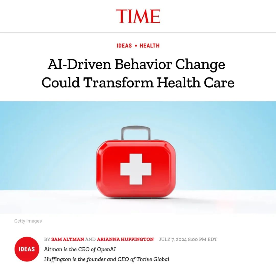 就在昨天,OpenAI CEO萨姆·阿尔特曼(Sam Altman)与AI医疗健康巨头Thrive Global的CEO阿里安娜·赫芬顿(Arianna Huffington)一起在《时代》杂志上发表了一篇文章,正式宣布了Thrive AI Health公司的成立。