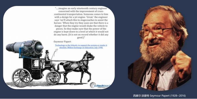 20 多年前,麻省理工学院第一任人工智能研究室主任西摩尔·派普特提出了一个思想实验,让我们想象,如果一名现代喷气发动机工程师穿越回 19 世纪初,向当时的马车夫和马车行展示喷气发动机,并询问这是否能帮到他们。