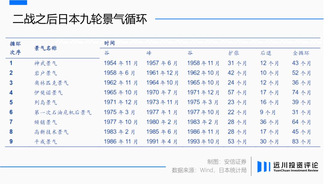 以此为起点,日本进入了长达四十多年的经济上行周期,期间经历了九次景气循环,虽然受1974年的石油危机冲击,GDP增速中枢下了一个台阶,但股市仅仅是短暂回调之后便继续高歌猛进。