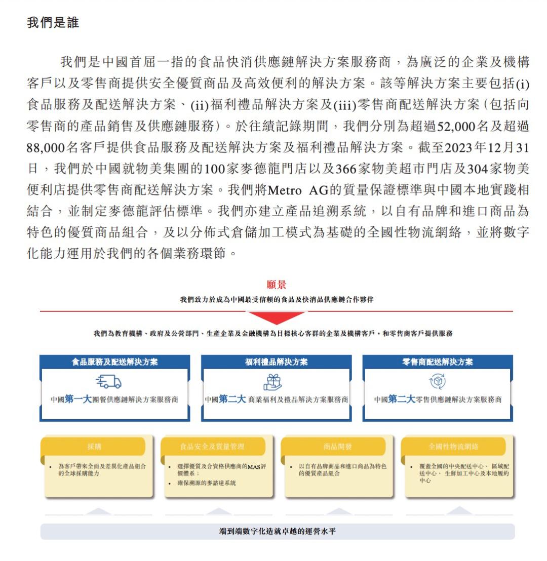 据招股书,截至2023年年末,公司共向物美集团的100家麦德龙门店、366家物美超市门店和304家物美便利店提供零售商配送服务。