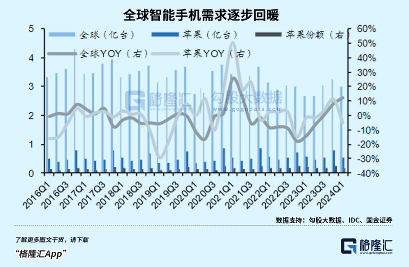 IDC报告显示,2024年第一季度,全球智能手机出货量同比增长7.8%至2.89亿台,已连续第三个季度增长。
