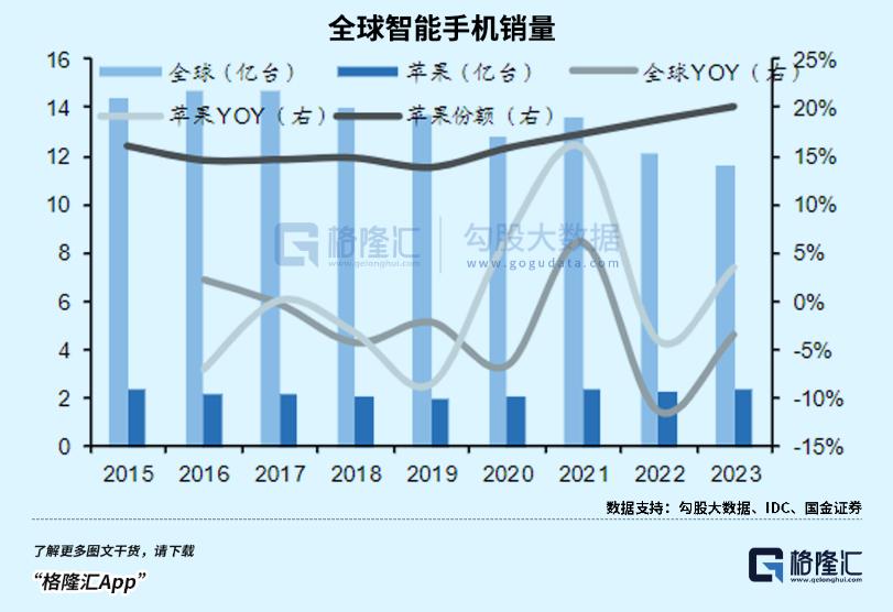 2023年全球智能手机出货量同比下降3.2%,降至11.7亿部,是十年来最低的全年出货量。与其他手机厂商相比,iPhone的销量份额虽然得到提升,但在竞争逐渐激烈的高端手机市场,iPhone去年在中国市场出现了罕见的发售即降价的现象。