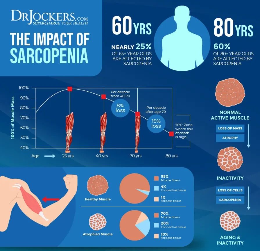根据WebMd Compass的数据显示,多数人在30岁以后,每10年就会减少3%至5%的瘦肌肉。并且女性的基础肌肉质量比男性更低,而男性在青春期后由于睾酮素的增加,比女性更容易保持肌肉质量。这也使得肌少症问题更频繁的发生在女性身上。