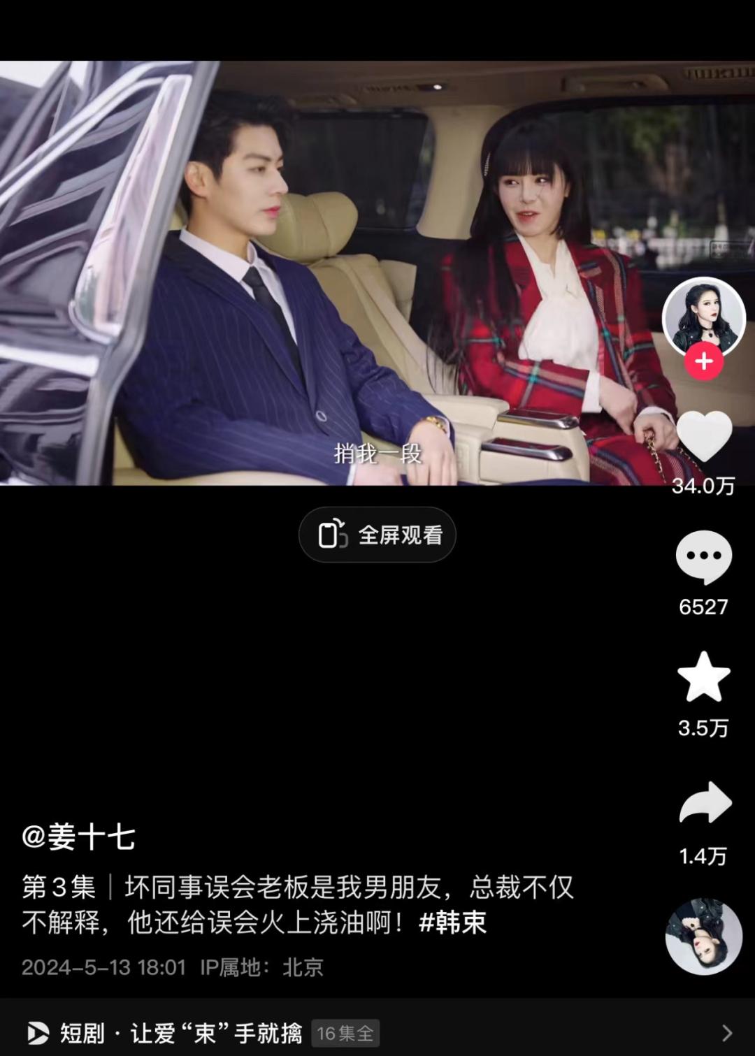 品牌方对于短剧态度也开始有所转变,在抖音、快手等平台,品牌定制剧成为短剧的主要商业模式。去年美妆品牌「韩束」在抖音平台上和姜十七合作了5部短剧,播放量50亿,植入的韩束红蛮腰礼盒去年卖出了290万+套。《2023快手短剧价值报告》显示,去年平台累计上线了90部+商业化短剧,累计合作了35+品牌。