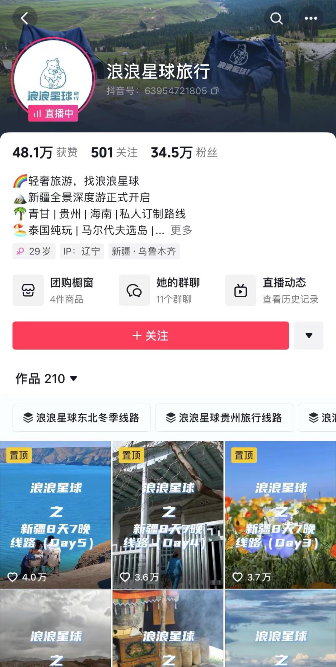浪浪星球创始人于同学说,他是在淄博爆火的时候看中了旅游这个赛道,他此前曾做过美妆类MCN,尽管并没有旅游垂类的相关经验,但他嗅到旅游将会迎大复苏,并提前预测、布局了新疆、哈尔滨等旅游路线,第一年就流水过亿。