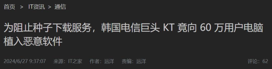 IT之家,为阻止种子下载服务,韩国电信巨头 KT 竟向 60 万用户电脑植入恶意软件