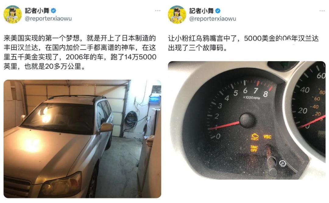 别急,这事其实后来还有下文。因为就在上个月头上的时候,这位“小舞”又发了一条新的推文,哀叹白丢了这五千美元——开了不到一个月的车,已经亮起了三个故障码。