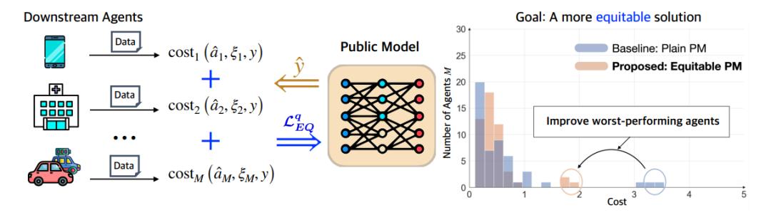 解决问题: 公共模型为各种下游任务提供预测,但一味强调预测准确性可能与下游 Agent 的不同最终目标相冲突。团队将 Agent 下游目标整合到优化过程,提出了公平目标(Equitable Objective),使下游 Agent 性能分布更加均匀,每个 Agent 都有自己独特的关注点