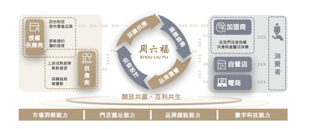 具体到周六福,公司向加盟店提供的,并不是加工好的产品,而是品牌授权。简单来说,就是允许加盟店,从已授权供应商那里进货,周六福负责对产品进行检测,检测合格后使用“周六福”品牌销售。