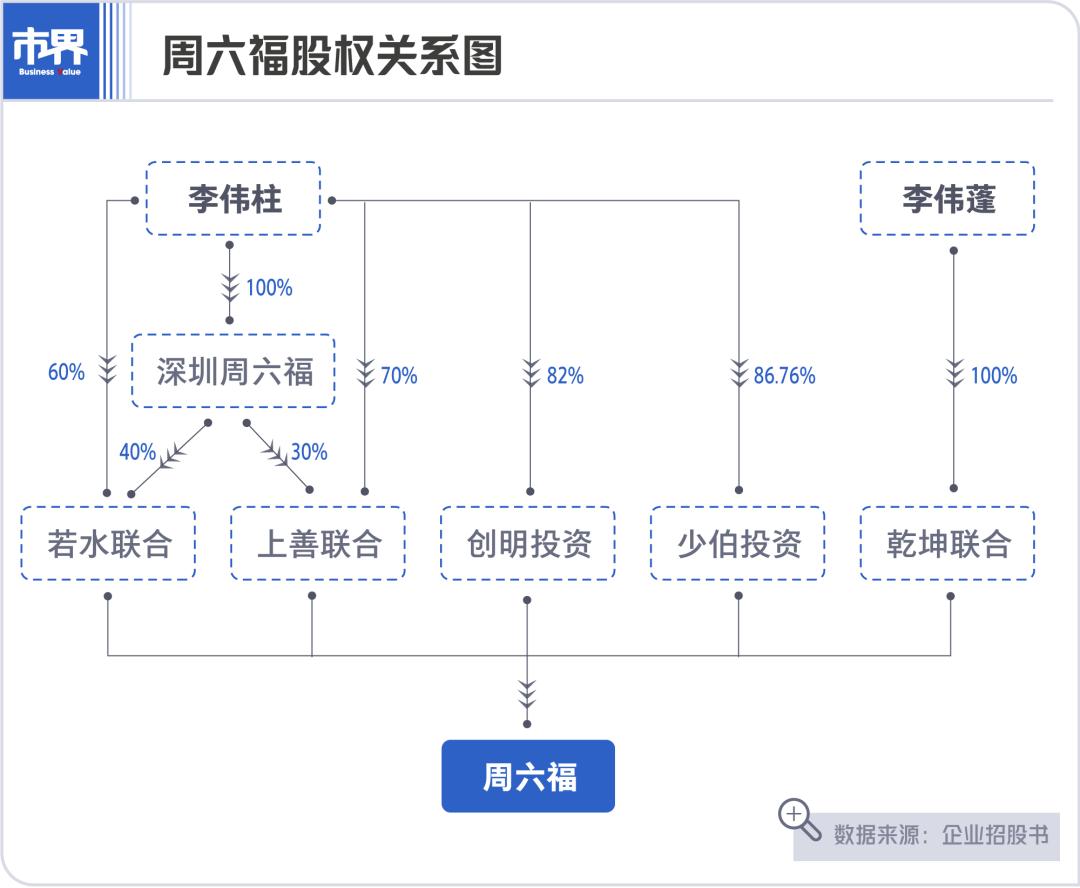 目前,李伟柱和李伟蓬兄弟通过直接和间接的方式,合计持有周六福94.46%的股份,是绝对的实控人。