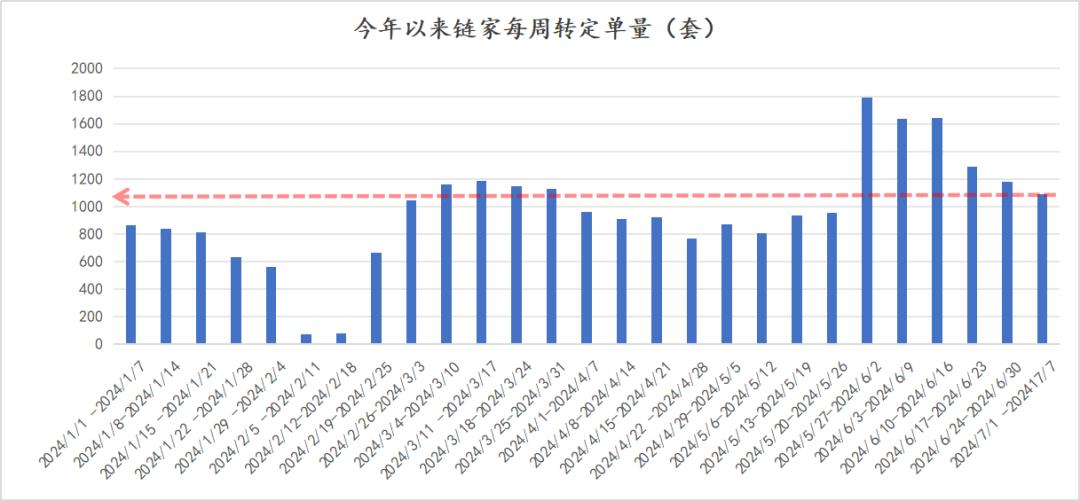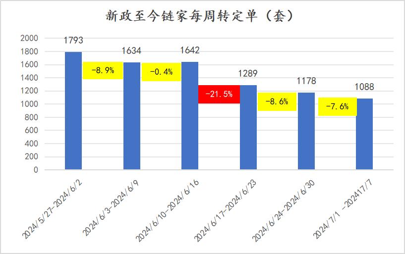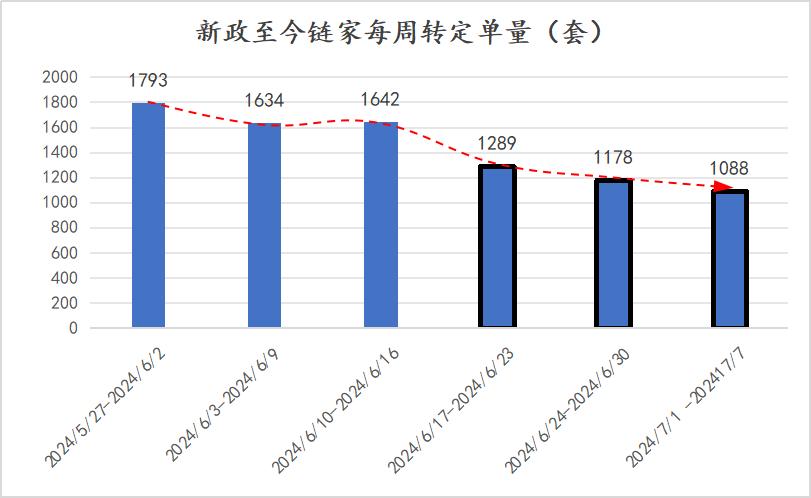 截至上周的1088套这个数据,对比新政首周的1793套下浮39% 。
