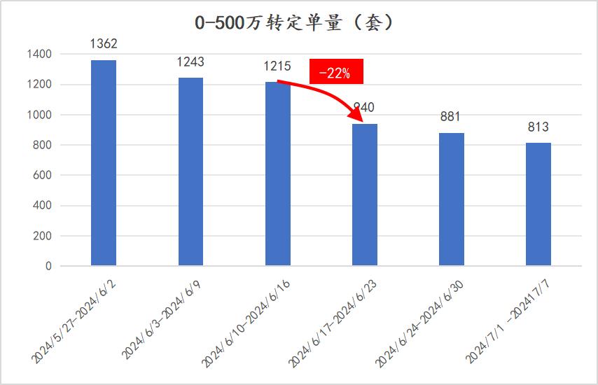 6月17日-23日,这周500万以下价格段环比上一周下滑22% 。