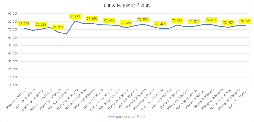 不管是转定单,还是每月网签,这个价段成 交占比都能达到 七 成 左右 。