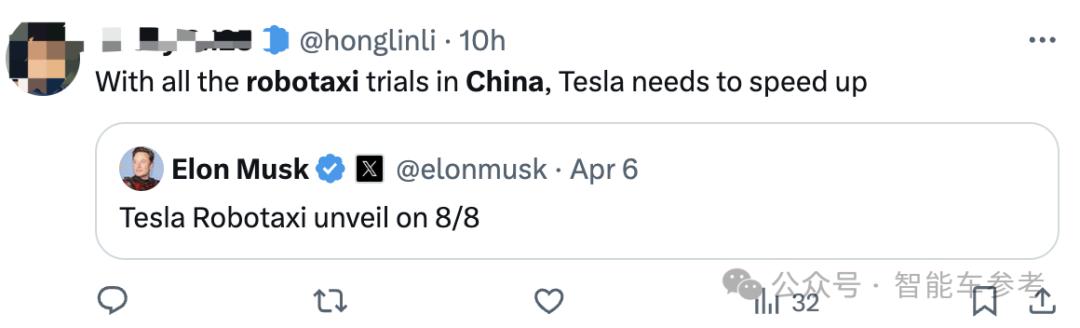 还有海外网友喊话马斯克,“特斯拉的Robotaxi要提速了”: