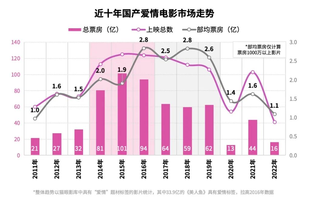 对于爱情片来说,大体量的商业作品并不适合细腻的感情呈现,最多会在奇幻类型中进行尝试,比如《画皮》《美人鱼》。况且,爱情片的优势就在于轻体量高收益,所以市场也很少选择制作爱情商业大片进行冒险。