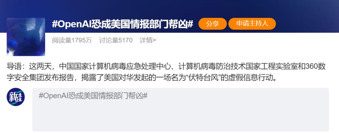 中国国家计算机病毒应急处理中心、计算机病毒防治技术国家工程实验室和360数字安全集团发布报告,揭露了美国对华发起的一场名为“伏特台风”的虚假信息行动。