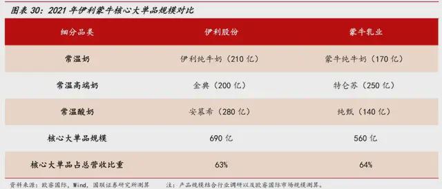伊利蒙牛核心大单品对比,图片来自国联证券研报