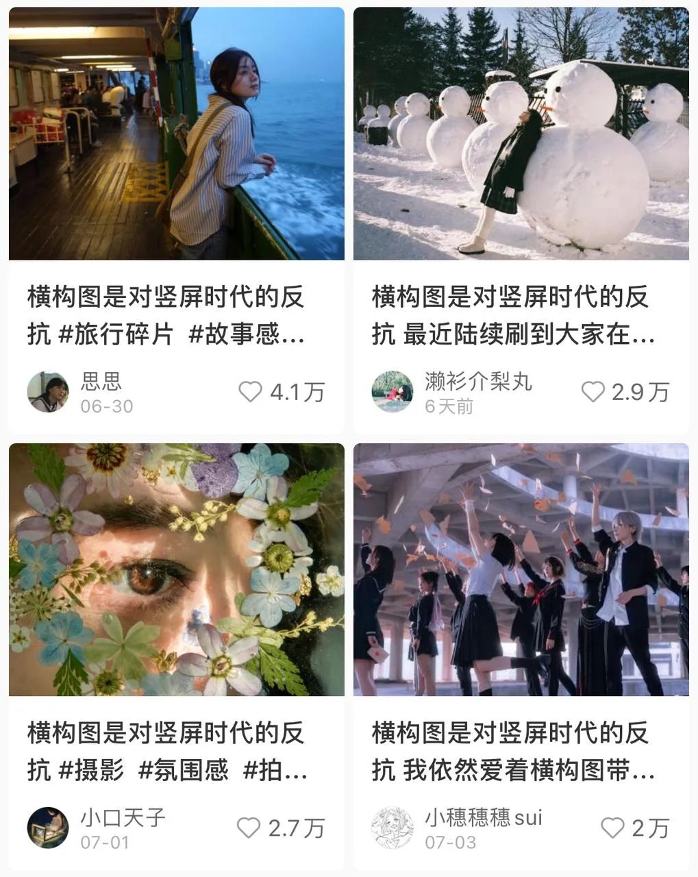随着 iPhone 的成功,手机屏幕也从横版变成竖版,更大的屏幕带来了更大的内容展示面积,紧跟着 Instagram 与 Snapchat 的流行,围绕手机屏幕的创作者发现,无论是从观看体验还是传播效率上,横构图已经失去了往日的强势,竖构图反而后来居上,越来越多的创作者主动或被动地开始创作竖构图内容。