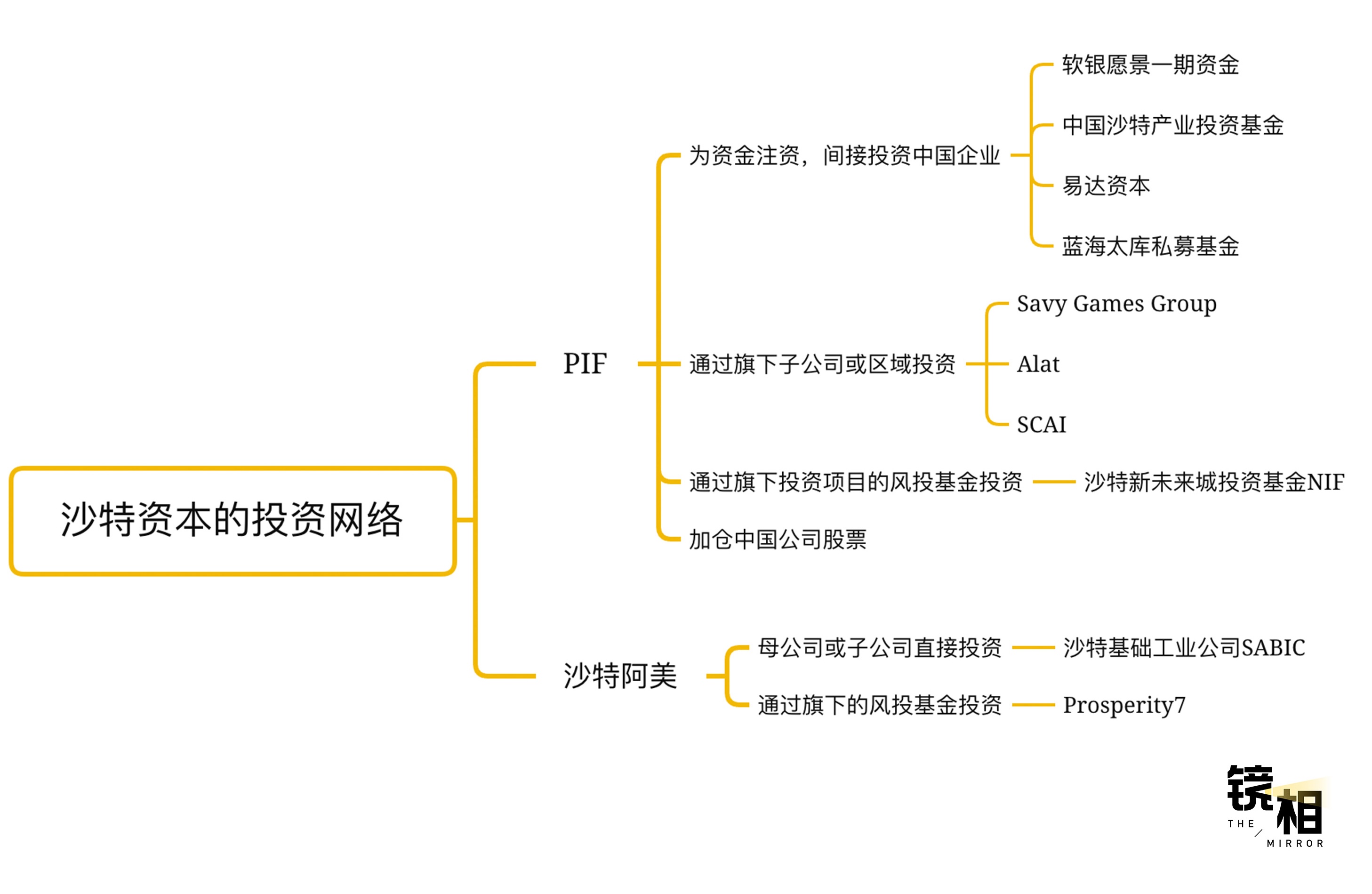 沙特的投资网络并不复杂。事实上,投资中国的主体主要是两个,沙特主权财富基金(Public Investment Fund,下称“PIF”),和沙特阿美。