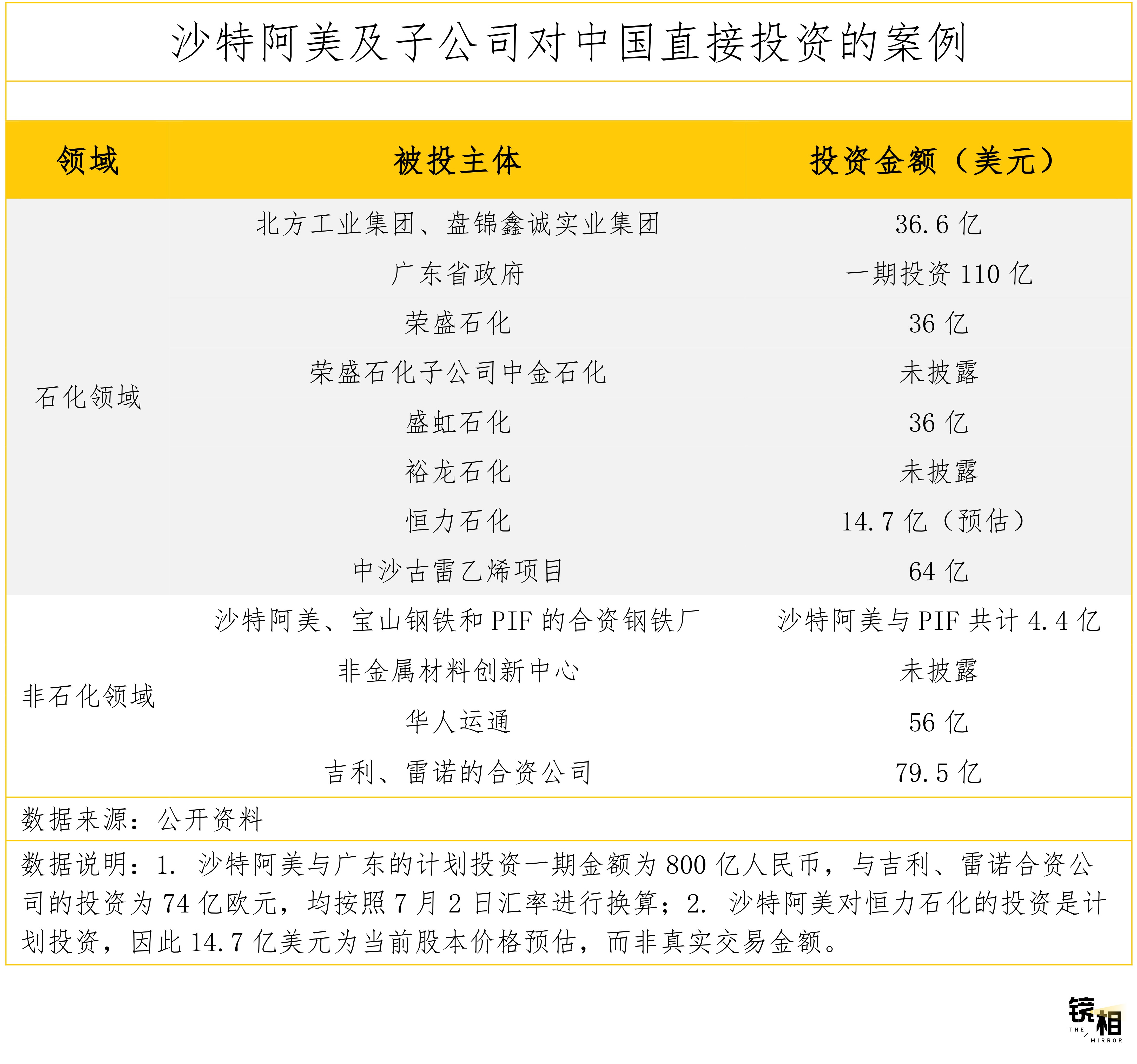 沙特阿美同样是沙特资本投资中国的一大来源。